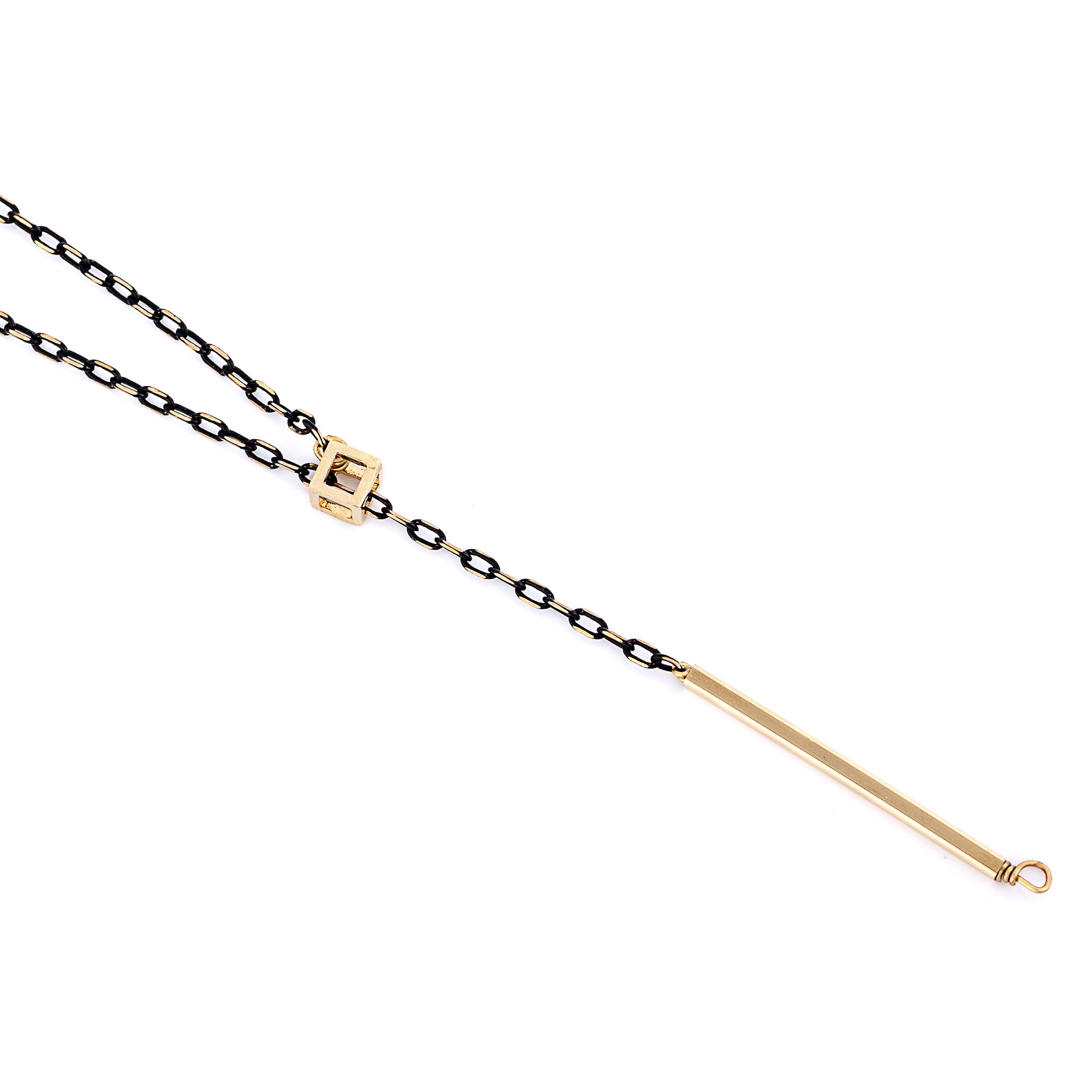 Clean lines and squared off angles bring together the natural ease of this dainty, elegant, necklace.